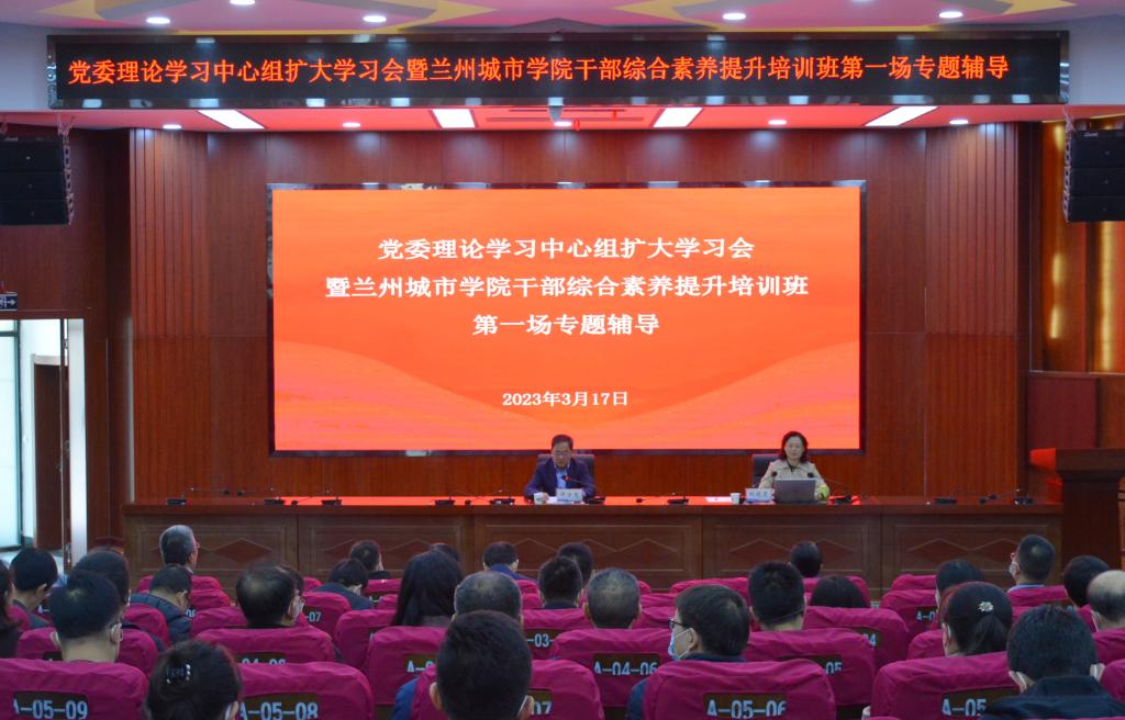 3月17日下午,学校在校本部大学生活动中心召开党委理论学习中心组扩大学习会暨bevitor伟德国际1946干部综合素养提升培训班首场辅导报告会。校党委书记许尔忠主持报告会并讲话。省委讲师团成员、甘肃政法大学教授刘晓霞应邀作专题辅导报告。全体校领导、党委常委,全校处科级干部共230余人参加会议。