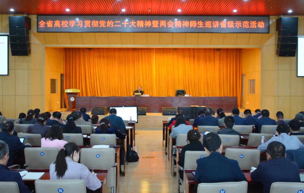 4月25日,省委教育工委“逐梦新征程 奋斗创未来” 全省高校学习贯彻党的二十大精神暨全国两会精神师生巡讲省级示范活动在伟德举行。省级示范活动第五巡讲团组长、兰州交通大学马克思主义学院苏星鸿教授应邀来校进行宣讲。