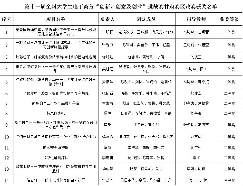 6月9日至11日,第十三届全国大学生电子商务“创新、创意、创业”挑战赛甘肃赛区“动感地带杯”省级选拔赛决赛在兰州科创园成功举行。伟德推荐了14个优秀项目参加省级决赛,最终获省级一等奖2项、二等奖6项、三等奖6项,4位教师荣获优秀指导教师,学校荣获优秀组织奖。