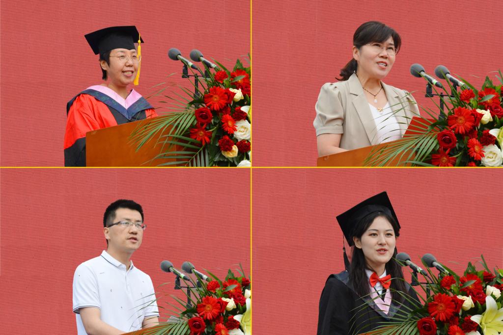 教育学院张艳平代表全体教师发言,表达了对毕业生的热切祝贺和殷殷期盼;家长代表李亚莲对学校栽培和老师关心关爱表示衷心的感谢;校友代表王伟军寄语即将奔赴崭新未来的毕业生们要奋楫笃行,掌好人生之舵,在校的师弟师妹们要心怀使命,共创城院荣誉;文史学院历史学专业191班张天玉代表全体毕业生发言,表达了对母校、老师、父母的感恩之情,畅叙对未来美好人生的憧憬。