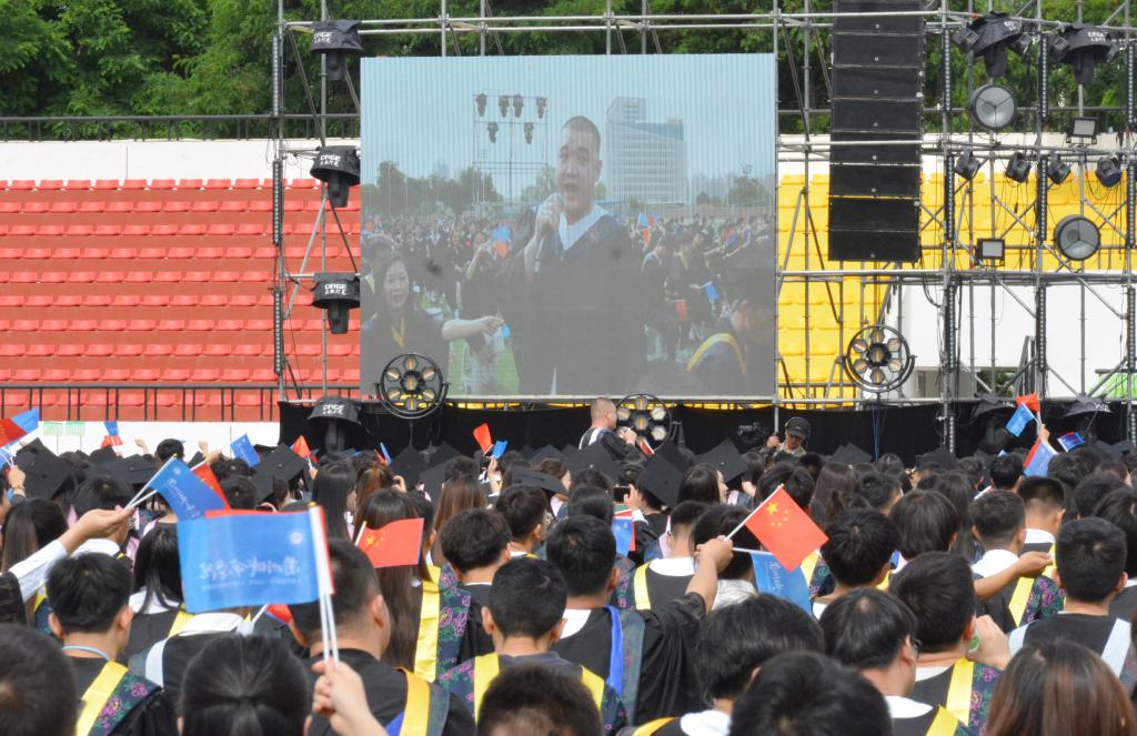 典礼中,毕业生们进行了“快闪”表演,歌曲联唱《星辰大海》《十年》《我的梦》《光阴的故事》《后来》《江南》《逆战》《新的天地》引发了全场师生的强烈共鸣。全体师生起立深情共唱《我和我的祖国》,把对祖国的声声祝福化作律动的音符,唱响中国梦,歌颂新时代,将气氛推向高潮。典礼通过学校官方微信视频号同步直播。