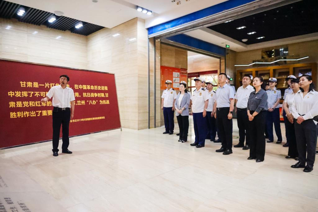 在八路军驻兰办事处纪念馆,参加活动的全体党员在鲜红的党旗下,重温了入党誓词,坚定了忠诚于党、为共产主义奋斗终身的决心。随后,全体同志认真聆听讲解,详细了解甘肃民众在中华民族抗日救亡洪流中的历史图景,在珍贵的文物、感人的照片和震撼的历史故事中,加深了红色记忆,更加深刻地体会到革命先辈矢志不渝的理想信念、艰苦奋斗的优良作风和不怕牺牲的爱国情怀。