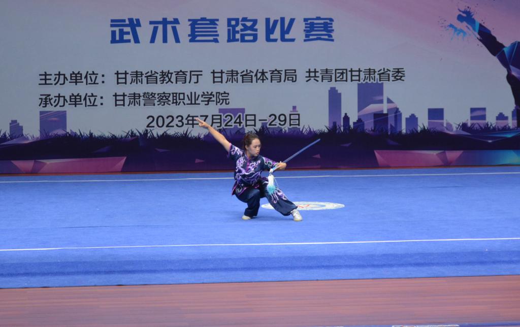 武术赛场上,曹志婷在女子甲组太极比赛中获得第五名,石磊在男子乙组刀术比赛中获得第六名。