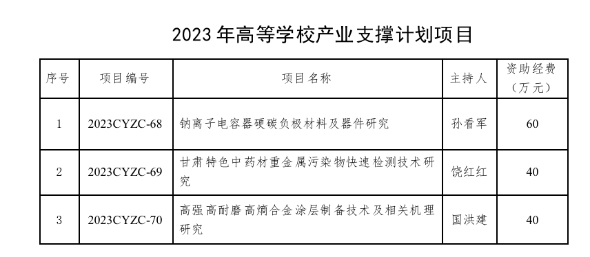 近日,甘肃省教育厅2023年高等学校产业支撑计划项目和青年博士支持项目立项结果公布,伟德共有7个项目获准立项,资助总经费170万元。