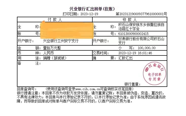 2023年12月19日bevitor伟德国际1946城市管理学院教师颉斌斌已通过积石山保安族东乡族撒拉族自治县红十字会向灾区捐款10万,以期望能为灾区人民送去一点温暖与关怀。面对地震灾区,颉斌斌老师无私奉献,用实际行动彰显了一位人民教师的大爱无私,为支援灾区贡献自己出的一份爱心。