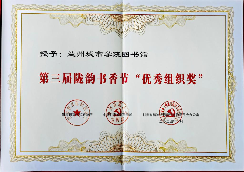 近日,由省委宣传部指导,省文明办、省文旅厅、省妇联主办的2023年第三届甘肃省“陇韵书香节”全民阅读系列活动暨2024年新春阅读季启动仪式活动圆满落幕。会上对60个“优秀组织奖”和109名“先进个人”进行了表彰,伟德图书馆荣获“优秀组织奖”。