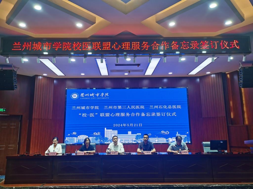 5月21日,学校心理健康教育与辅导中心与兰州市第三人民医院、兰州石化总医院签订校医联盟心理服务合作备忘录。校党委常委、副校长李慕堂出席签订仪式并致辞,兰州市第三人民医院院长霍小宁,兰州石化总医院副院长姜晓梅,伟德党委学生工作部负责人、各二级学院党委书记、副书记、学工办主任、全体辅导员、两所医院的精神卫生专家、心理健康教育与辅导中心专兼职教师共计100余人参加了仪式。