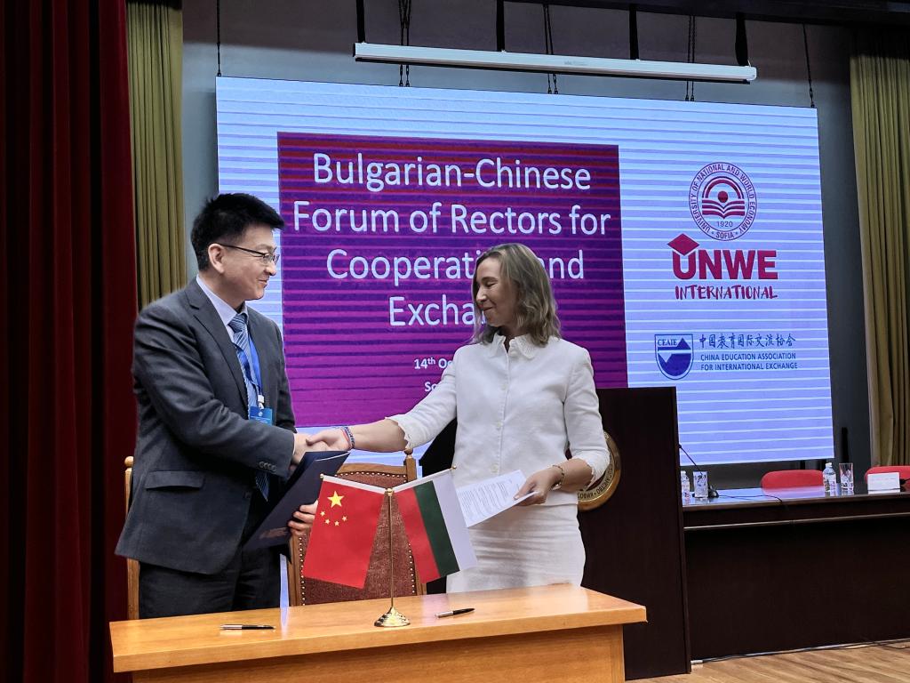 10月14日,韩高年出席第二届中国—保加利亚大学校长会议,与保加利亚大学校长会议主席、保加利亚索菲亚电信与邮政大学(Sofia University of Telecommunications and Post)校长米格莲娜·特梅尔科娃(Miglena Temelkova)共同签署了教育国际合作备忘录。10月15日,韩高年参访普罗夫迪农业大学和普罗夫迪音乐舞蹈美术学院,了解保加利亚农业、艺术等学科发展情况,并开展交流研讨。访问期间,中国驻保加利亚大使戴庆利、保加利亚教育与科学部副部长尼古拉·维塔诺夫(Nikolay Vitanov)与中国高校代表团会面。今年是中国保加利亚两国建交75周年,保加利亚是中国在中东欧地区的重要合作伙伴,两国拥有深厚的传统友谊和良好的合作传统。伟德与保加利亚高校签约并达成合作意向是深入贯彻习近平总书记今年5月出访欧洲的重要讲话精神以及落实全国教育大会精神的重要举措。