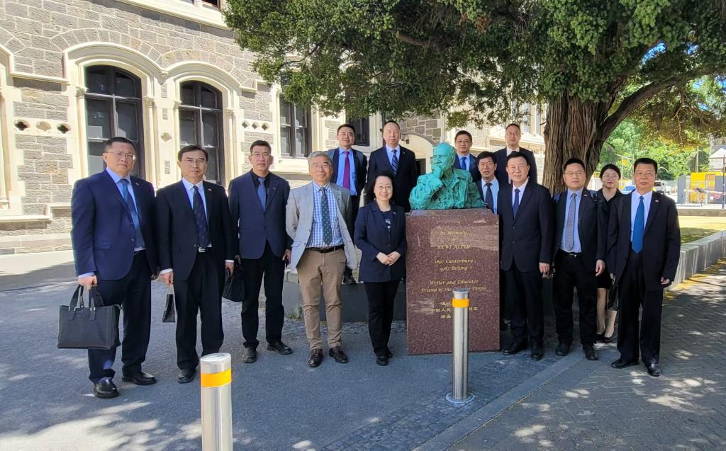在新西兰,甘肃省友好代表团先后与新西兰前议长戴维·卡特、我省友城克赖斯特彻奇市市长菲尔·梅杰会面。双方回顾了今年新方代表访问甘肃的场景,并就明年开展青少年交流项目,推动高校师生交流,组派演出团体开展文化交流活动等事宜达成共识。在克赖斯特彻奇市和塞尔温区访问期间,双方在克市“中国园”共同栽下了象征两省市世代友好的“友谊树”,并在路易·艾黎纪念公园共同为路易·艾黎雕像敬献花篮。代表团在克市考察了ARA坎特伯雷理工学院,在奥克兰赴梅西大学访问交流,与新西兰甘肃总商会在奥克兰共同举办交流座谈会。