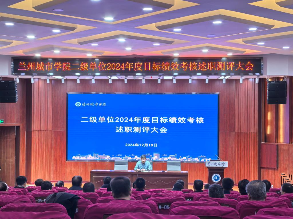 12月18日,兰州城市学院二级单位2024年度目标绩效考核述职大会在校本部大学生活动中心举行。全体校领导出席会议,各二级单位主要负责人、教职工代表和年度考核领导小组成员参加会议。述职大会由校党委常委、副校长魏晋华主持。