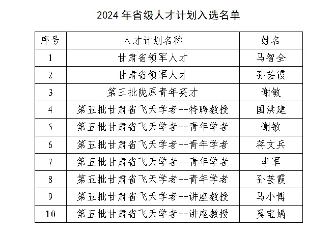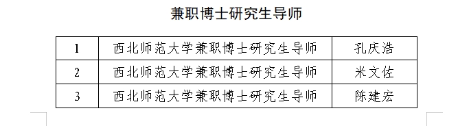 近日,中共甘肃省委、省人民政府公布了《关于确定卜伟锋等500名同志为甘肃省领军人才的决定》,中共甘肃省委人才工作领导小组公布了《关于确定丁思等500名同志为第三批陇原青年英才的通知》,甘肃省学位委员会、甘肃省教育厅公布了《关于公布第五批甘肃省飞天学者特聘计划入选人员名单的通知》,西北师范大学公布了《关于聘任2024年兼职研究生导师的通知》,伟德多位教师入选。