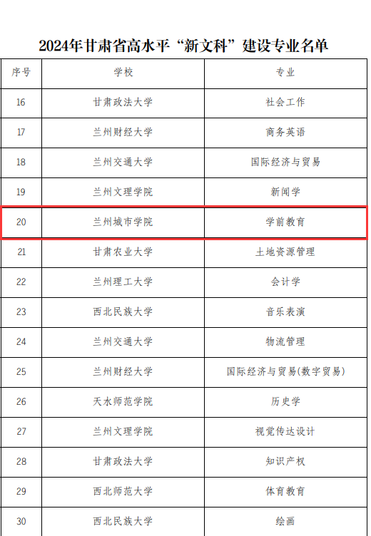 近日,甘肃省公布了高水平新工科、新医科、新农科、新文科示范高校、示范专业和示范新型学院的申报结果,伟德学前教育专业荣获省级高水平“新文科”建设专业认定,标志着伟德在该领域的专业建设再上新台阶。