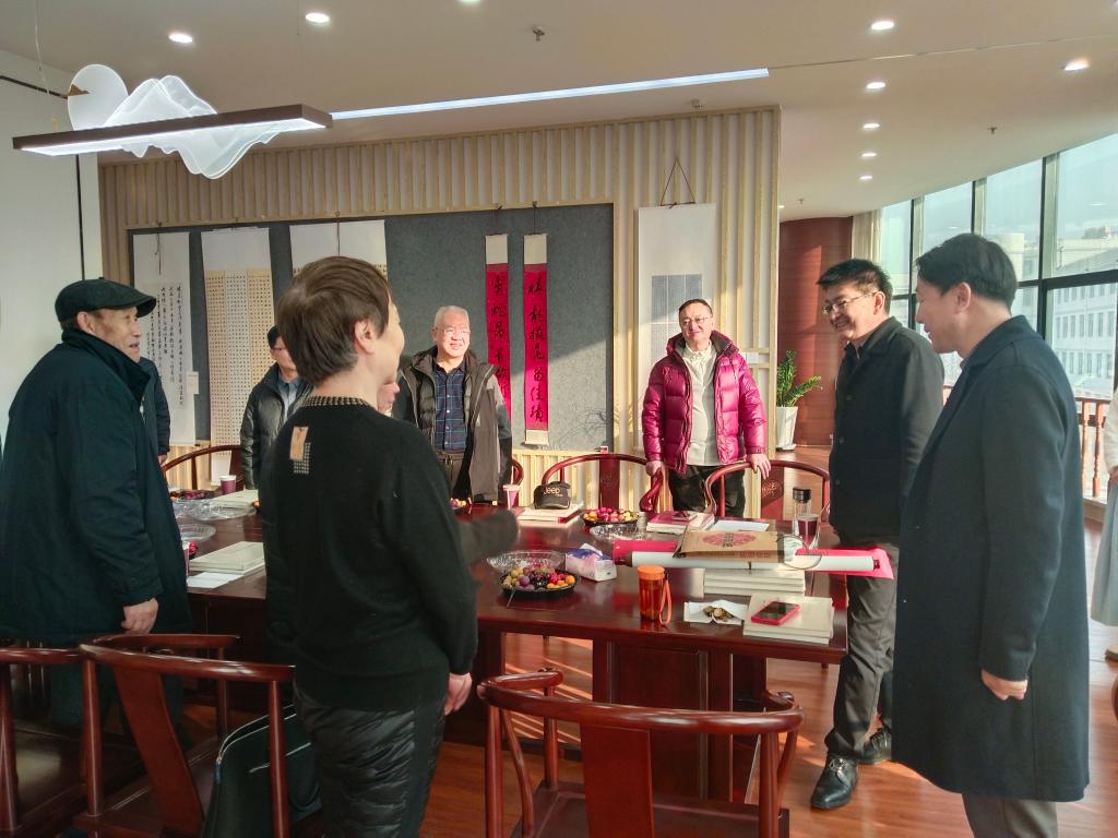 12月26日下午,复旦大学甘肃校友诗书画院院长周光超、执行院长王晓诗、秘书长赵宝洵,中国金融美协理事、甘肃省金融美协副主席班俊才,著名画家刘玉明,书画院办公室主任崔建丽一行来伟德甘肃张芝书法院考察交流。