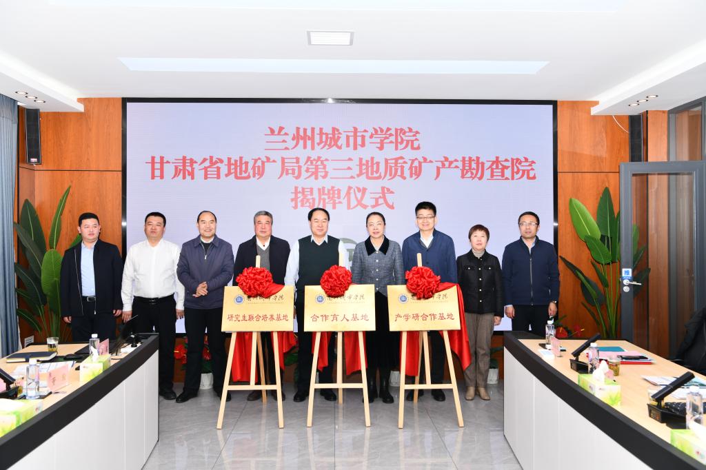 12月30日下午,学校与甘肃省地矿局第三地质矿产勘查院举行战略合作协议签约暨合作基地揭牌仪式。学校党委书记曹洁,党委副书记、校长韩高年,党委常委、副校长魏晋华,党委常委、副校长王素云,甘肃省地矿局第三地质矿产勘查院党委书记、院长丁书宏,党委副书记董瀚,党委委员、副院长蒙轸、姜鑫、张震出席签约仪式。仪式由董瀚主持。双方相关职能部门、二级学院负责人参加活动。