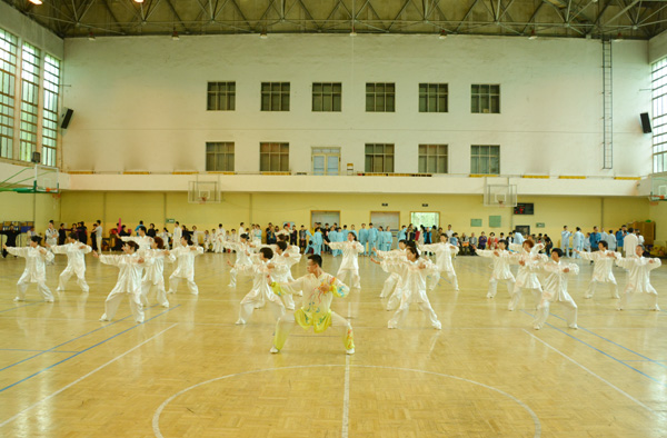 5月28日,甘肃省教科文卫系统武术健身展演赛在伟德校本部体育馆隆重开幕。来自全省13家教科文卫系统单位的近200名武术爱好者参加了集体展演项目和8项个人项目的比赛。