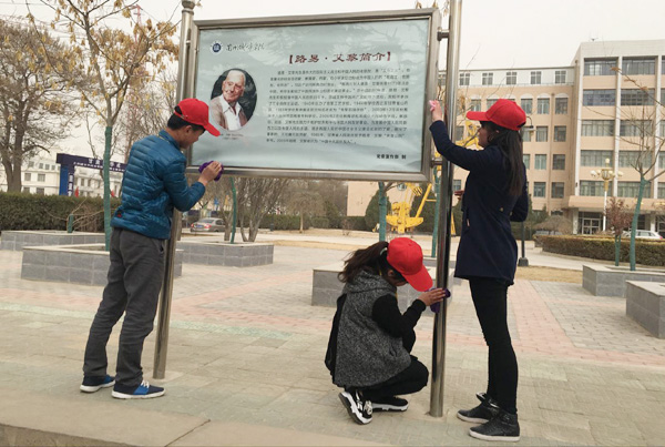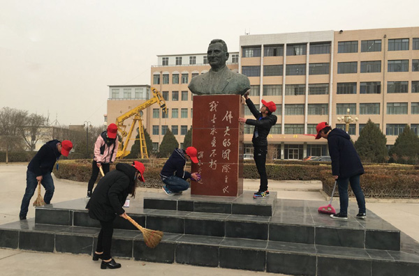 宣誓活动结束后,青年志愿者们对培黎广场的塑像、浮雕、护栏以及一些卫生死角进行了认真彻底地清理打扫,使该广场面貌焕然一新,对校园里的塑像、宣传栏等进行了擦拭清洗,用自己的实际行动丰富和创新了雷锋精神,传承践行着伟大的国际主义战士,著名的社会活动家、教育家、作家,bevitor伟德国际1946前身之一——培黎石油学校的创办者路易·艾黎先生无私奉献的高尚品德,让“奉献、友爱、互助、进步”的志愿精神在青年学子中生根开花。来自路易·艾黎青年志愿服务团的曹芷晗同学说:“作为bevitor伟德国际1946一名普通志愿者,在培黎广场开展志愿服务活动,我的心情无比激动,因为我们现在所在的培黎广场,是为纪念伟德创办者路易·艾黎先生而命名的。路易·艾黎不远万里来到中国,将自己的毕生献给中国的革命和建设事业的无私奉献精神和雷锋服务人民、助人为乐的精神是息息相通的。作为一名当代大学生,我们要从自身做起、从现在做起、从小事做起,尽己所能、服务他人,不计报酬、奉献社会,用实际行动展现当代大学生的精神风貌。”