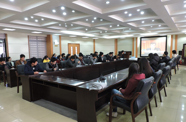 3月5日上午,bevitor伟德国际1946“聚焦两会 共话国是”学生代表座谈会在校本部综合楼一楼会议举行。校团委负责人及40余名学生代表参加了座谈会。会上,与会人员共同观看了全国人民代表大会十二届四次会议开幕会,并认真听取了李克强总理所作的政府工作报告。随后,同学们结合自身实际,就“报告”中涉及到的就业、高等教育、创新创业、民生等问题进行了交流座谈。来自化学与环境科学学院的吴金龙同学在交流中谈到,两会让我们认识了国家发展的方向,了解国际形势,我们青年学生应该自觉培养社会责任感,坚定社会主义信念,在思想、生活和学习中努力发挥个人潜能,实现个人价值和社会价值的结合,我为自己身为一名中国人而骄傲。