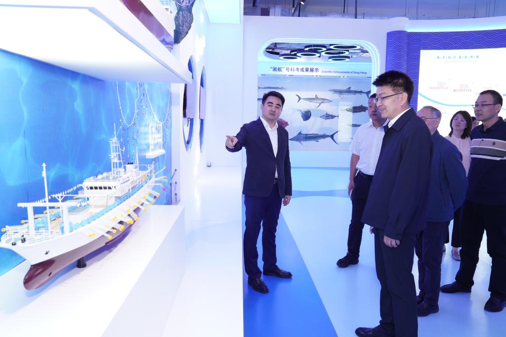 当日下午,调研组前往上海海洋大学调研。上海海洋大学党委书记王宏舟主持座谈会,党委常委、副校长倪卫杰参加座谈。双方围绕综合改革、特色发展、新能源利用等议题展开交流。韩高年表示,希望学习该校在特色发展与综合改革方面的先进经验。王宏舟提出,希望两校在地方文化研究、黄河水资源保护等领域加强合作,共同为美丽中国建设贡献力量。会后,双方职能部门负责人开展对口交流。调研组还实地考察了水产学院实验室建设、科研成果转化展览、校史馆,以及校园建设和光伏建设项目。