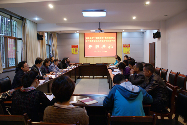 9月16日上午,“职教国培(2015)”中职学校骨干教师培训项目bevitor伟德国际1946工艺美术专业培训班开班典礼在伟德培黎校区举行。校党委常委牟录贵出席开班典礼。美术学院、继续教育学院负责人及来自全国12个省市、自治区的培训学员参加开班典礼。
