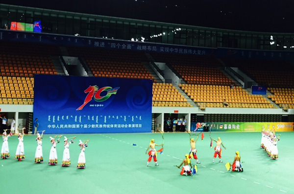 本届民族运动会表演项目共计178个,共分为综合类、竞技类、技巧类三大类别。表演项目与一般意义上的竞技项目有所不同,重在展示各民族独有的特色传统体育项目及艺术形式。在表演项目比赛中,伟德学生顽强拼搏,积极进取,不畏强手,展现出了较高的表演竞技水平。其中,藏族项目《七彩神箭》获二等奖,保安族项目《扽棍》、裕固族项目《塔拉赛羊》、东乡族项目《抛嘎少年》获三等奖。