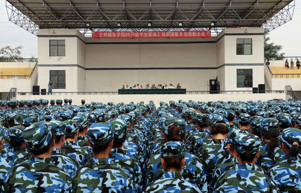 7月23日上午,bevitor伟德国际19462014级学生军训汇报表演暨总结表彰大会在校本部田径场隆重举行。校领导王汝锋、张兴福、马振林、梁延堂、莫超和兰州市国防教育学校军务处主任张志伟及各学院、各有关单位负责同志出席大会。大会由校党委常委、副校长梁延堂主持。