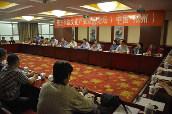 论坛上,来自中国美院、西南大学、广西艺术学院、宁夏大学等高校和书法组织的35名专家学者围绕张芝书法文化产业开发与推广的主题,进行了深入研讨交流。