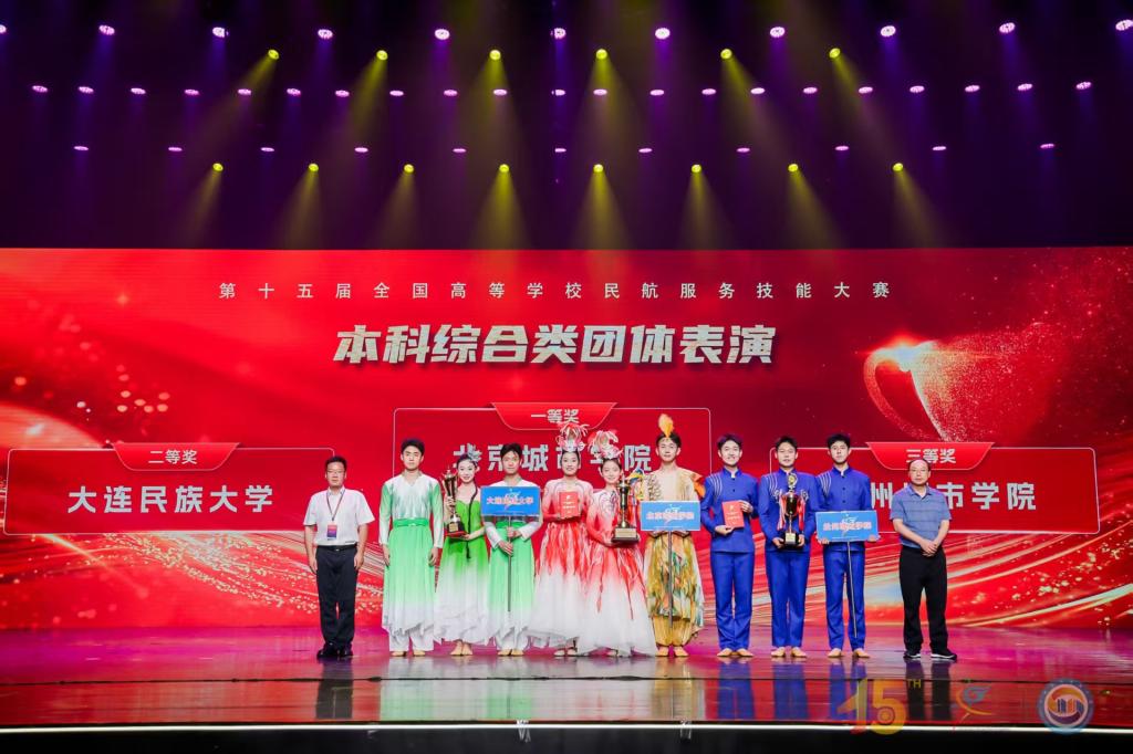 在备受瞩目的全国高等学校民航服务技能大赛中,伟德航空服务艺术与管理专业学生组成的代表队,与来自全国的85支队伍同台竞技,最终荣获本科综合类团体综合季军、民航安全服务技能二等奖、团体表演三等奖。