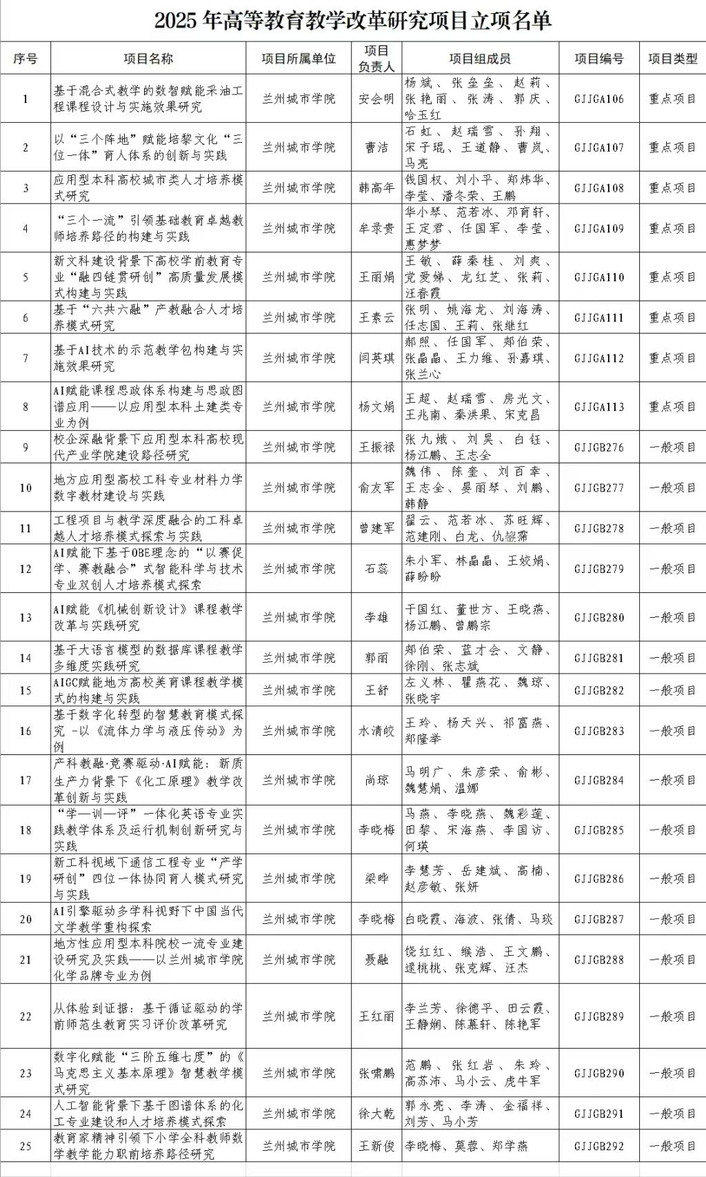 此次立项的课题聚焦新时代高等教育高质量发展需求,涵盖课程思政建设、新工科与新文科融合、应用型人才培养模式创新、数字化教学资源开发等多个前沿领域。重点项目如《以“三个阵地”赋能培黎文化“三位一体”育人体系的创新与实践》《应用型本科高校城市类人才培养模式研究》等,体现了学校服务区域发展、深化教学改革的鲜明特色。
