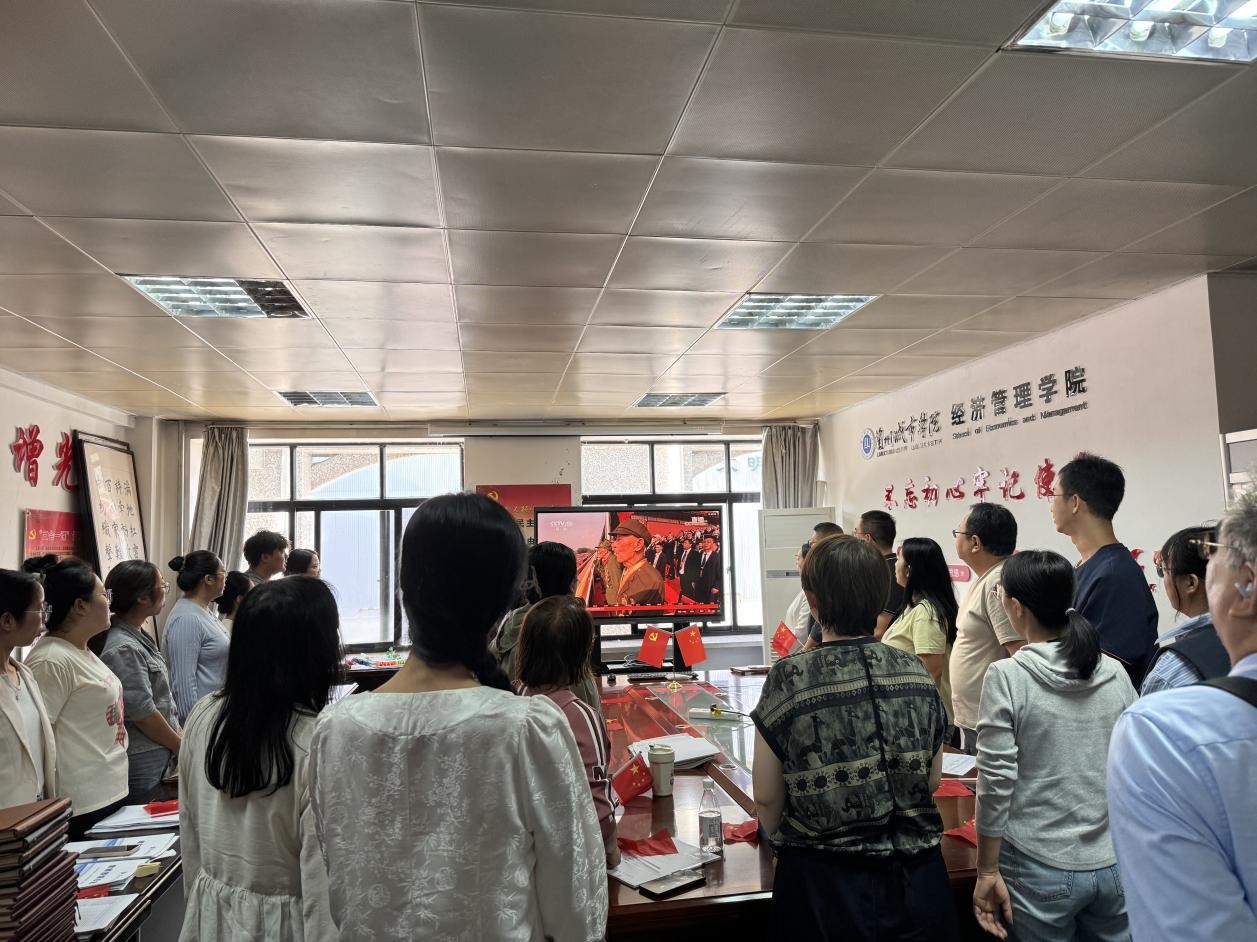 9月3日,纪念中国人民抗日战争暨世界反法西斯战争胜利80周年大会在京隆重召开。全体校领导、党委常委,校党委委员、纪委委员,党委职能部门、基层党委负责人,机关副处级以上干部在博雅讲堂集中收看大会盛况,各二级学院、各单位、各部门同步组织师生通过电视、网络、广播等媒体,集中收看收听大会盛况和相关报道,并结合实际,认真讨论畅谈学习体会。