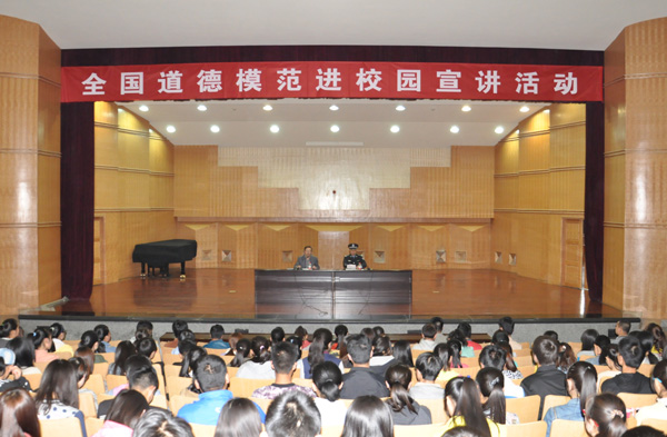 4月2日下午,学校在校本部音乐厅举办了“全国道德模范进校园宣讲报告会”。2014年度“兰州好人”、“中国好人榜”上榜人物黄跃金应邀作报告。报告会前,校领导王基会见了黄跃金。伟德500余名师生代表聆听了宣讲。