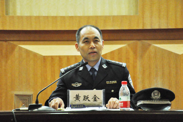 黄跃金,现任兰州市公安局特警支队副支队长,一级警督警衔。先后荣立一等功1次、二等功2次、三等功2次;被公安部授予“灾区群众满意的公安特警”荣誉称号;被国务院军队干部转业领导小组安置办公室、中共中央组织部、人力资源和社会保障部、中国人民解放军总政治部联合授予“全国模范军队转业干部”荣誉称号。