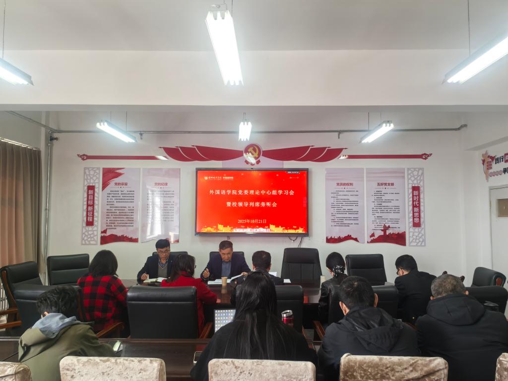 1021日,外国语学院党委举行理论学习中心组(扩大)学习会。校党委常委、副校长李慕堂带领学校列席旁听组成员列席旁听并全程指导。学院全体处科级干部、党委委员、党支部书记参加。