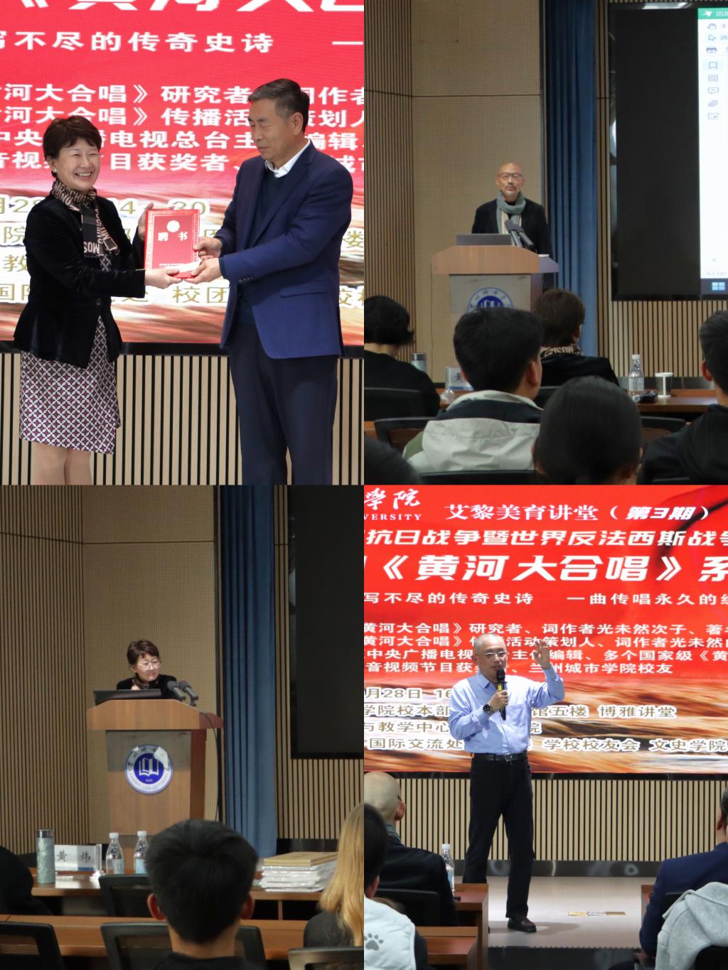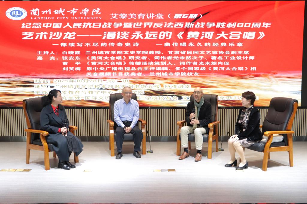 为纪念中国人民抗日战争暨世界反法西斯战争胜利80周年,1028日下午,学校素质教育与教学中心与音乐学院在校本部博雅讲堂联合举办永远的《黄河大合唱》系列讲座与艺术沙龙活动。校党委常委、副校长李慕堂,甘肃侨联副主席、西北民族大学黄炜教授,相关职能部门和二级学院负责人,以及研究生、本科生和留学生代表共约200人参加活动。