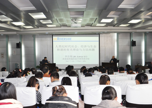 1月7日下午,应伟德和中国科学院寒区旱区环境与工程研究所的邀请,美国加利福利亚大学河滨分校植物与植物科学系Bai-Lian Larry Li教授在综合楼三楼第一学术报告厅作了题为“生态复杂性与可持续性”的学术报告。科技处、教授委员会、化学与环境科学学院、城市经济与旅游文化学院的师生近200多人参加了报告会。