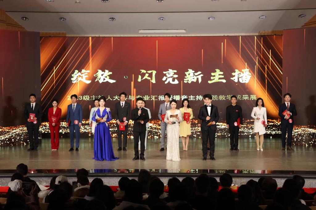 10月30日晚,传媒学院“绽放·闪亮新主播”2023级主持人大赛与专业汇报暨播音主持实践教学成果展在音乐厅举行。校党委常委、副校长李慕堂、传媒学院师生代表共500余人参加活动。