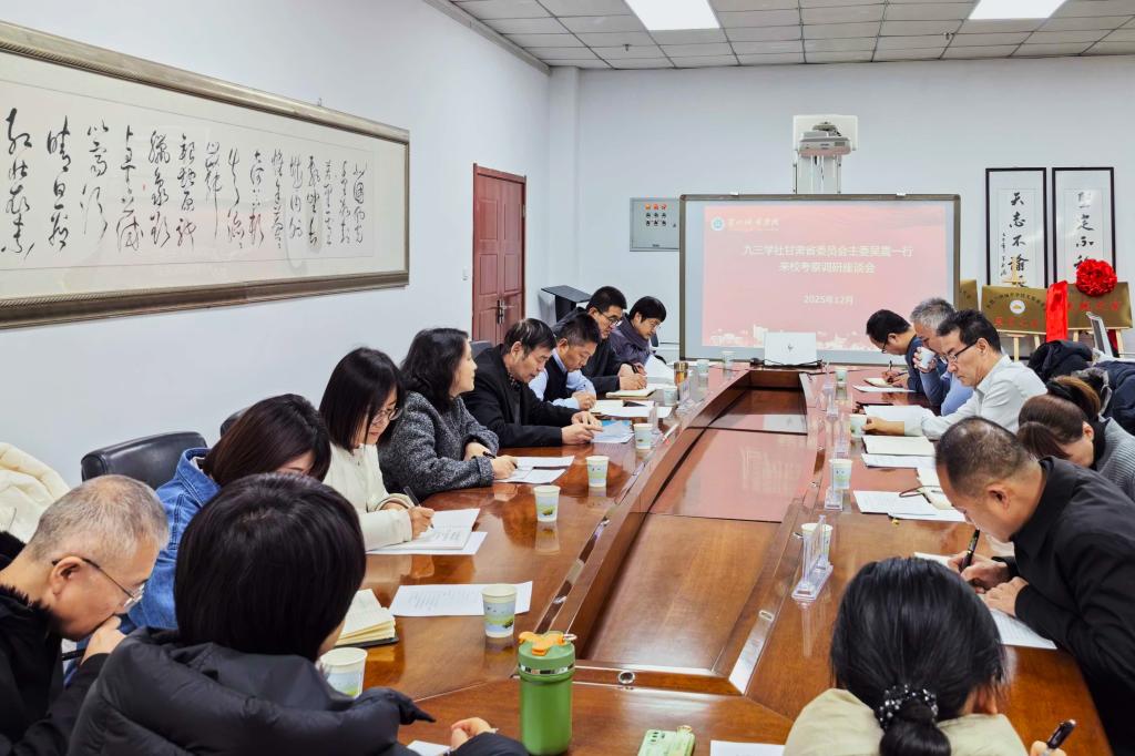 12月5日上午,九三学社甘肃省委员会主委吴震一行来校,专题调研基层组织建设工作并召开座谈会。校党委副书记、党委统战部部长牟录贵主持会议,九三学社省委相关部门负责人及学校支社社员代表参会。