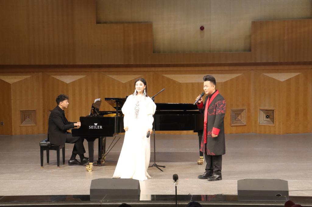 本场音乐会以“听见河湟”为主题,聚焦西北地区跨民族、跨文化的山歌艺术“花儿”。青年女高音歌唱家郭彦华倾情演绎了十六首经典与新编曲目,体系完整,风格鲜明。上半场在悠远高亢的《水红花令》中拉开序幕,《委屈了哈》《老爷山上的刺梅花》等作品情感真挚,展现了“花儿”细腻的叙事魅力;特别设置的阿穆尔乐队与马头琴合奏《战马》《万马奔腾》,彰显了民族器乐的磅礴感染力。下半场《尕三妹令》《阿姐花戴上》《雪白的鸽子》等曲目,通过丰富的“令”调与地域风情,生动勾勒出河湟地区的民俗画卷。音乐会在多首经典曲目的联唱中圆满落幕。