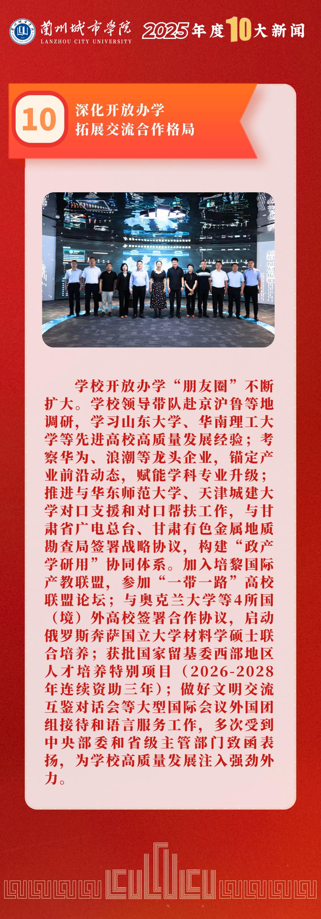 征程万里风正劲,重任千钧再出发。2026年,是学校实施“十五五”规划的开局之年,是深化综合改革的突破之年,更是全力推进高质量发展“九大工程”的决胜之年,学校将以习近平新时代中国特色社会主义思想为指导,以党的二十大和历次全会精神为统领,深入贯彻习近平总书记视察甘肃重要讲话精神,全面落实全国全省教育大会部署,坚持和加强党的全面领导,坚守立德树人根本任务,聚焦“建大申博”核心目标,以更大决心深化改革创新,以更实举措破解发展难题,以更强担当狠抓工作落实,持续激活内生动力,不断提升治理效能,奋力谱写建设特色鲜明的高水平应用型大学新篇章!