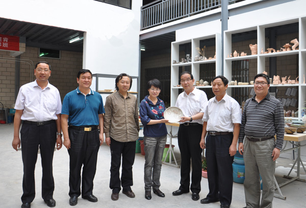 吴明明一行深入到伟德培黎校区,先后参观了美术学院陶艺工作室、雕刻工作室等,仔细了解了相关产品的生产工艺。双方就加强校地合作交换了意见,并商谈了建立合作关系的具体事宜。