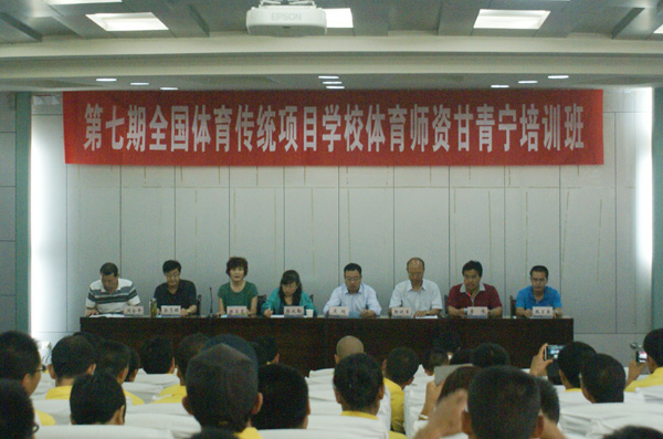 此次培训共有来自甘青宁三省区体育传统校100名体育教师、64名安置担任中小学体育教师的优秀退役运动员、36名县级体校和训练网点的教练员共200名学员参训,这是今年西部乃至全国规模最大的体育师资培训,既整合了教育体育师资资源,也推动了体教结合。培训贯彻“按需培训,能力为主”的原则,在为期6天的培训中,学习体育政策法规,介绍国内外学校体育情况,围绕我国学校体育面临的陷阱、机遇和课余训练工作的实际,讲解青少年运动损伤的预防与处理,进行校园舞、健美操、田径、篮球、排球专项技术培训,并观摩省优秀运动队专业运动员训练比赛,达到理论前瞻性和工作针对性的有机结合。