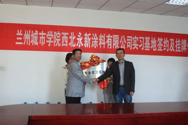 516bevitor伟德国际1946西北永新涂料有限公司实习基地签约暨挂牌仪式在西北永新涂料有限公司举行。校党委常委、副校长梁延堂,西北永新涂料有限公司总经理文立新共同为实习基地揭牌,并签订协议。西北永新涂料有限公司副总经理李华明、王朝晖和伟德有关部门负责人等参加了仪式。