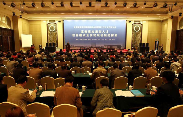 11月10日至11日,由徐州工程学院承办的全国新建本科院校联席会议暨第十三次工作研讨会在徐州召开。教育部高教司司长张大良,中国教育学会会长钟秉林,教育部高教司原巡视员兼教育部评估中心主任刘凤泰,江苏省教育厅副厅长丁晓昌,徐州市副市长孔海燕出席,校长王汝锋和来自全国百余所新建本科院校的党委书记、校长及相关负责同志参加了研讨会。本次研讨会的主题是:高素质应用型人才培养模式及其实现机制的探索。