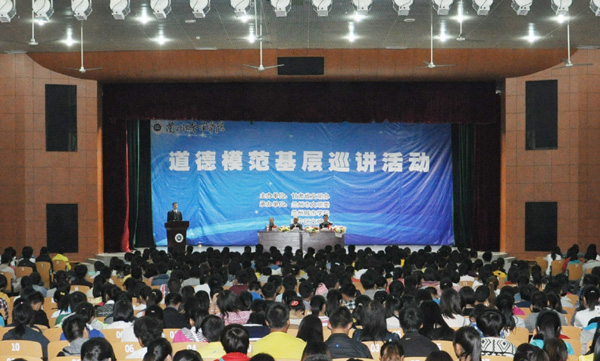 9月15日下午,“最美夫妻”李成环事迹报告人龚大锬,兰州市公安局交通治安分局副局长、第三届甘肃省道德模范康岸桥,金昌市金川集团公司退休职工、第三届甘肃省道德模范李洪启来校开展道德模范基层巡讲活动。甘肃省文明办未成年人思想道德建设处处长董平,兰州市文明办副调研员赵培仕和伟德党委常委、副校长马振林出席了巡讲活动。伟德中层干部代表及文学院、数学学院、城市经济与旅游文化学院2013级新生1000多人聆听了巡讲。