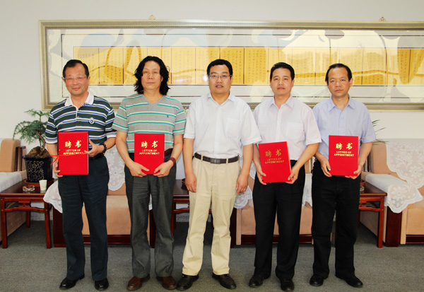 座谈会上,校党委常委、副校长、研究中心主任莫超向五位书法家颁发了特聘教授聘书,并对他们给予甘肃书法文化教育研究中心的大力支持表示感谢。几位书法家对研究中心的设施、现状给予了较高评价,并对研究中心今后的发展思路、科研设想、书法文化教育、普及和宣传举措等提出了非常好的建议。
