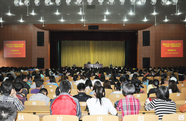 当天下午,校宣讲团成员凌晓华、李震岗、王晓平、张海亮分别为城市经济与旅游文化学院、机关和后勤党总支、数学学院、校本部的教育学院和社会管理学院师生宣讲了“我的中国梦”。