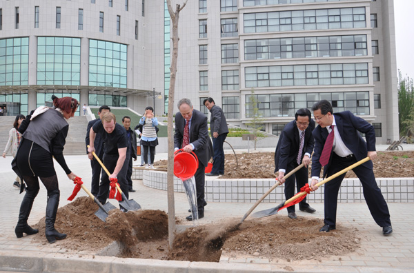 剪彩仪式结束后,外宾朋友和领导们一起欣赏了伟德音乐学院师生表演的精彩文艺节目,在校本部逸夫图书馆前共植友谊树,并前往培黎校区参观了培黎展览馆,在路易·艾黎先生塑像前合影留念。