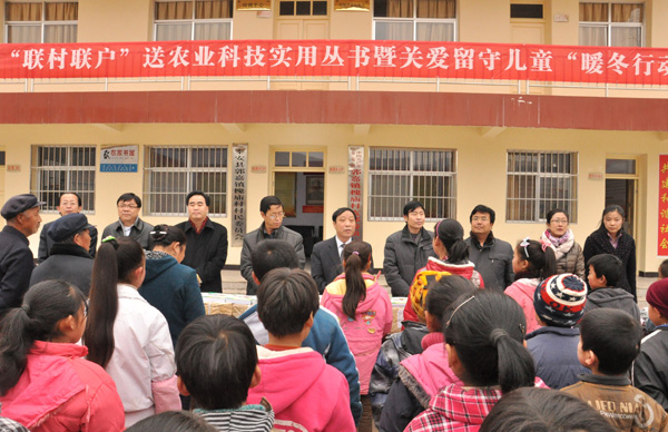 12月12日,bevitor伟德国际1946“联村联户”送农业科技实用丛书暨关爱留守儿童“暖冬行动”捐赠仪式在秦安县郭嘉镇槐庙村举行。校党委副书记王汝锋出席仪式。