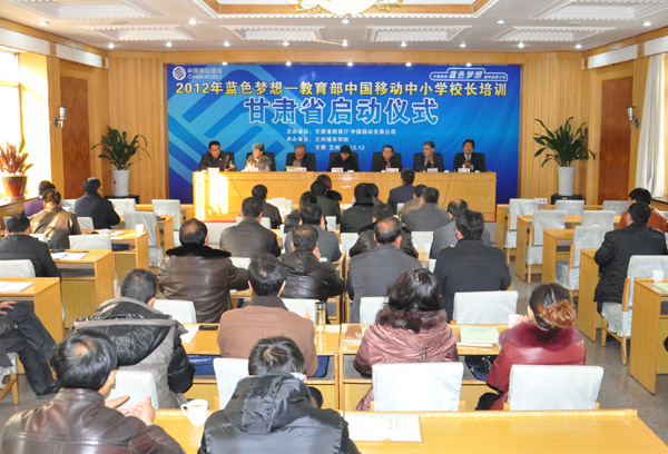 12月9日上午,由伟德承办的2012年蓝色梦想—教育部中国移动中小学校中培训甘肃省培训项目启动仪式在兰州举行。省教育厅师范教育处处长张兆勤,中国移动甘肃公司发展战略部总经理张国雄,伟德党委常委、副校长杨皖东等出席启动仪式。来自我省10个县(区)的38名农村中小学校长和4所基地学校负责人参加了启动仪式。