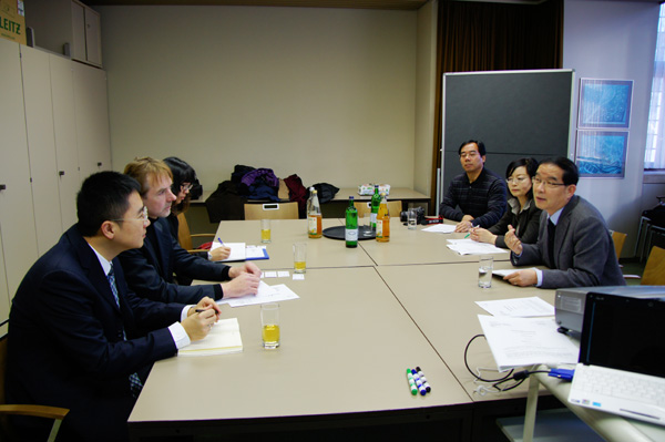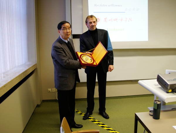 在Lindener德国文化交流合作处访问期间,孔庆浩校长与姜秋霞副校长同该部门负责人Meier进行了座谈。座谈期间双方就各自情况进行了介绍,并就Lindener德国文化交流合作处在伟德开展德语培训工作,组织中德两国学生开展冬、夏令营互访,利用德国优势专业对伟德师生进行培训,在伟德投资兴建符合欧盟测量标准的环境信息监控基站,组织开展中方企业管理人员及技术人员赴德短训与考察,联合举办中德文化及技术研讨会、建立中德文化中心最终达成共识。