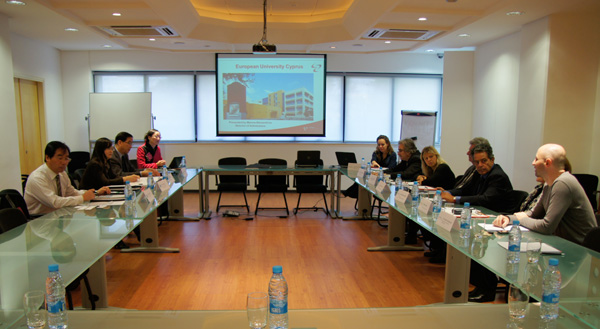 在塞浦路斯欧洲大学访问期间,孔校长一行与该校副校长Kostas Gouliamos教授、招生部主任Marina Alexandrou女士、艺术与教育学院院长Andreas Marks教授、理学院院长Nicos Terezopoulos 教授、人文及社会科学学院院长Nora Liassis 博士、商务管理学院院长Andreas Hadjis教授等人进行了座谈。孔校长向对方介绍了伟德历史沿革、发展历程与办学现状。Kostas Gouliamos则就塞浦路斯欧洲大学与世界各国大学合作、科研整体水平等情况进行了简单介绍。Marina Alexandrou女士向孔校长详细介绍了塞浦路斯高等教育基本情况、塞浦路斯欧洲大学教育体制、院系及专业设置及国际学生的组成情况。双方在深入交流的基础上,就双方互派留学生,互认学分,奖学金设置,塞浦路斯欧洲大学在伟德设立中塞文化中心,双方教师合作与交流,伟德帮助塞浦路斯欧洲大学开设石油及天然气专业,“2+2”专业国际合作及学生交换学期等项目进行了洽谈并最终达成共识。会后,姜秋霞副校长代表伟德与塞浦路斯欧洲大学副校长Kostas Gouliamos共同签署了国际教育合作备忘录、国际教育合作协议及两份补充文件。